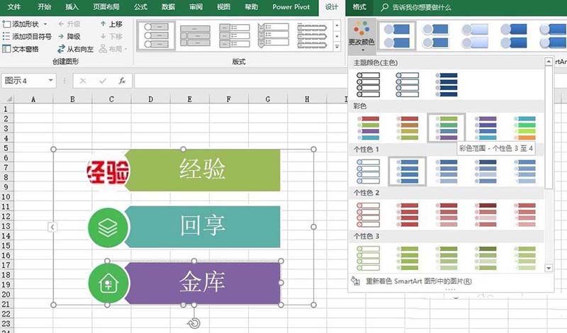 5、可以通过菜单中的“更改颜色”按钮,来修改图形的颜色