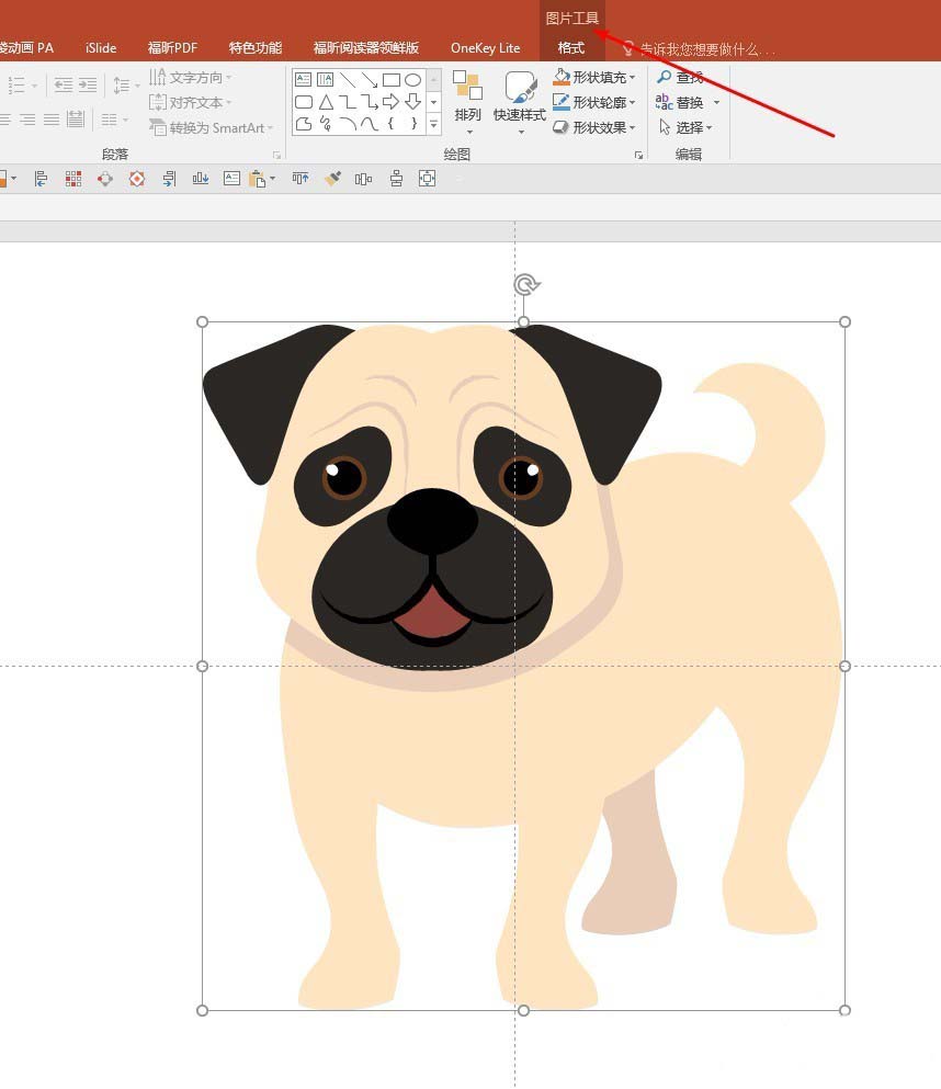 4、素材就以图片的形式插入到了PPT中,在ppt中改变素材大小。