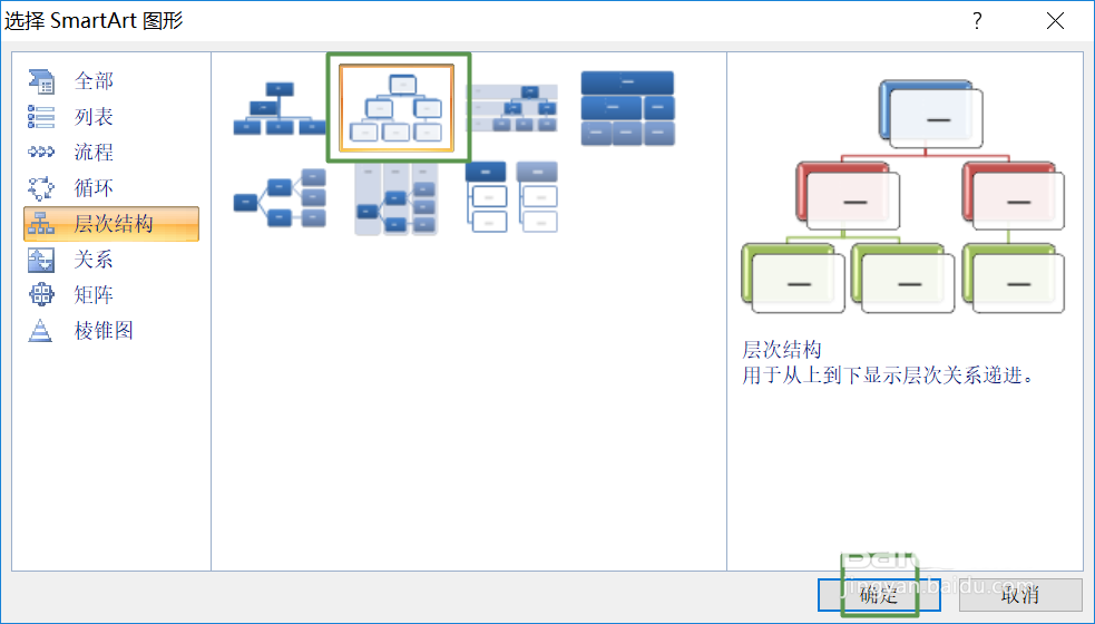 4、之后我们选中第二个组织结构图,然后我们点击确定;