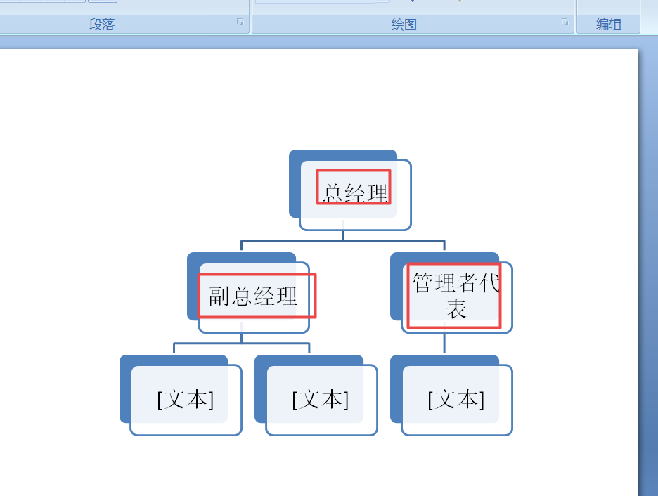 6、我们在上方的文本中输入总经理,下方的文本中分别输入副总经理和管理者代表;