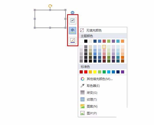 6、可以通过右侧的三个小图标来设置形状的颜色等。