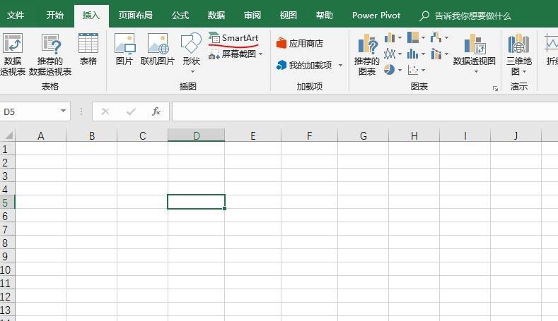 1、在excel中,点击“插入”菜单中的“SmartArt”按钮。