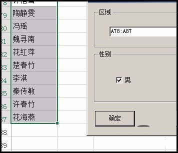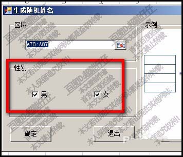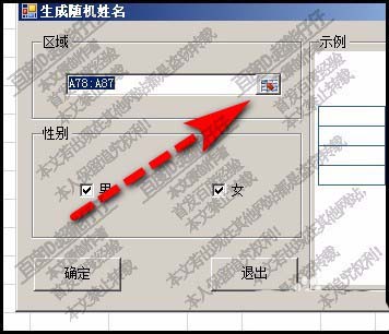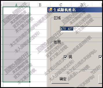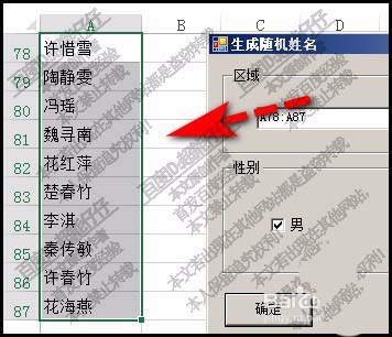 6、然后,选择单元格区域即可。接着,再在下面性别这里,选择要生成男姓名或是女姓名。