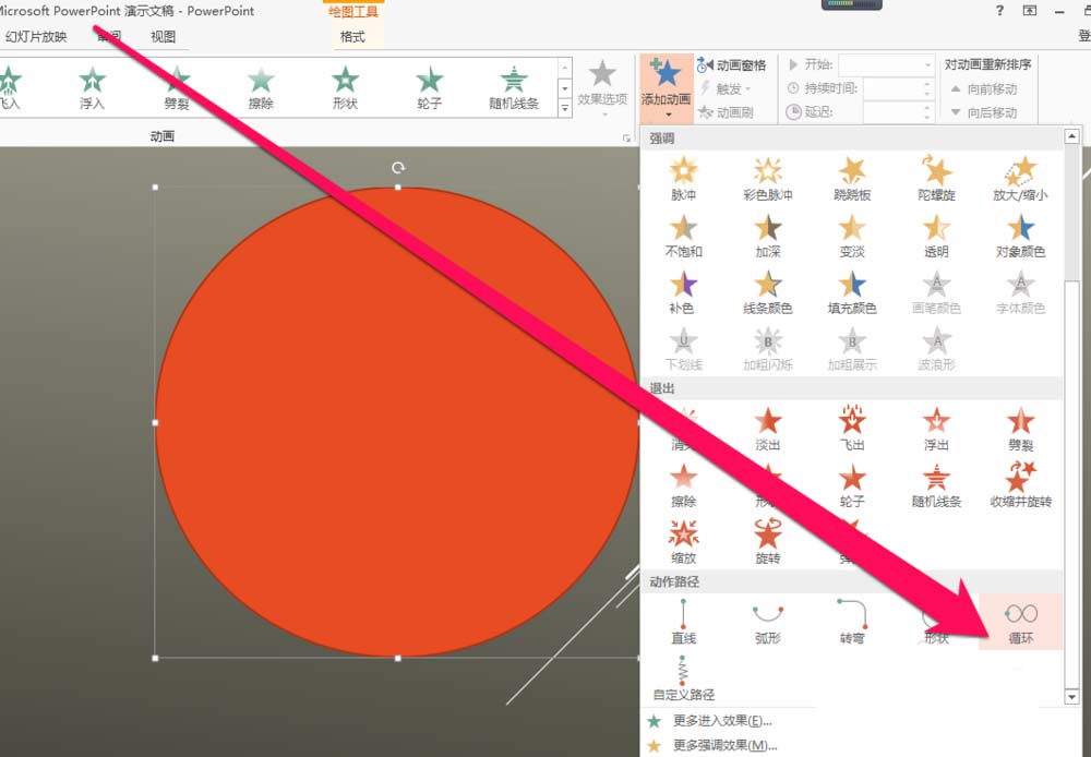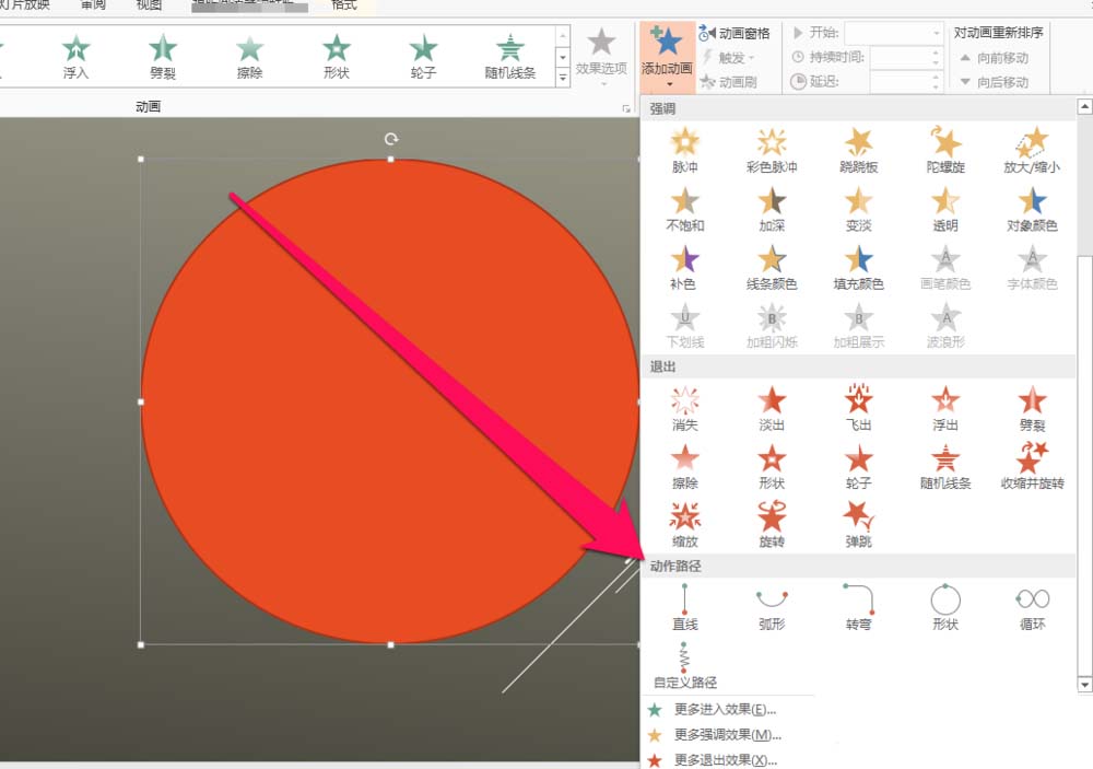 7、点击动作路径按钮后,为图形选择动画的动作路径。