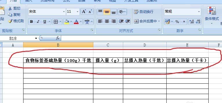 2、然后分别列出食物标签基础热量100g千焦、摄入量g、总摄入热量千焦、总摄入热量千卡,这样就可以根据运动消耗给出的单位很容易计算差值。