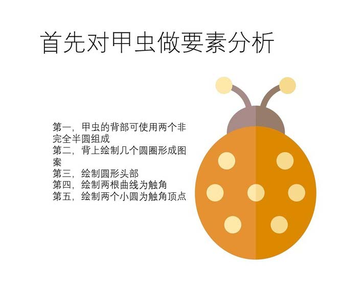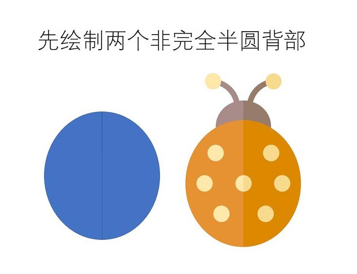1)甲虫的背部可使用两个非完全半圆组成