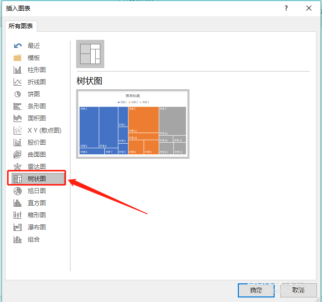 3、点击图表选择左侧的【树状图】