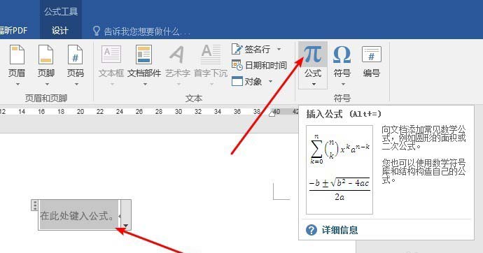 2、点击“插入”下的“公式”,得到一个插入公式的设置窗口。