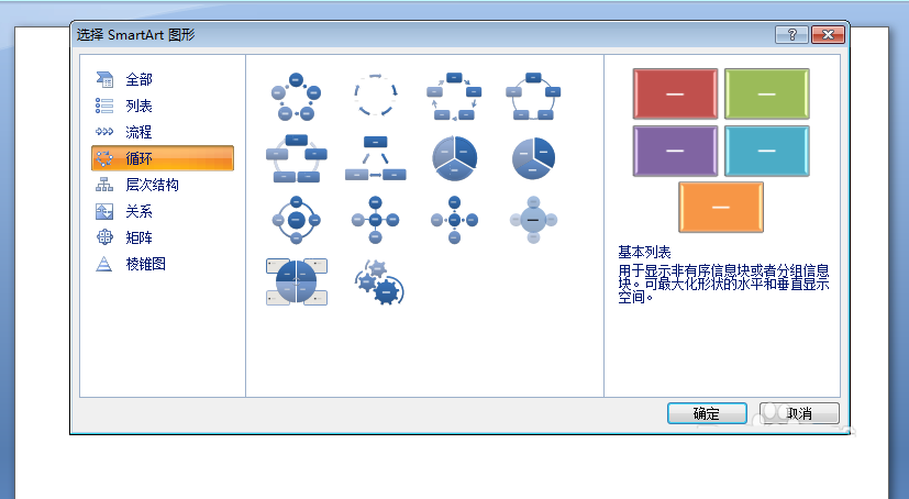 3、在弹出的“选择SmartArt图形”窗口,根据自己所需点击合适的图形;