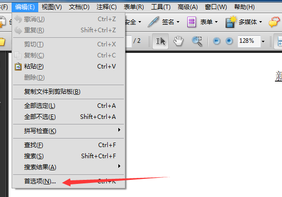 2、点击了的Adobe Acrobat的菜单中编辑的菜单。