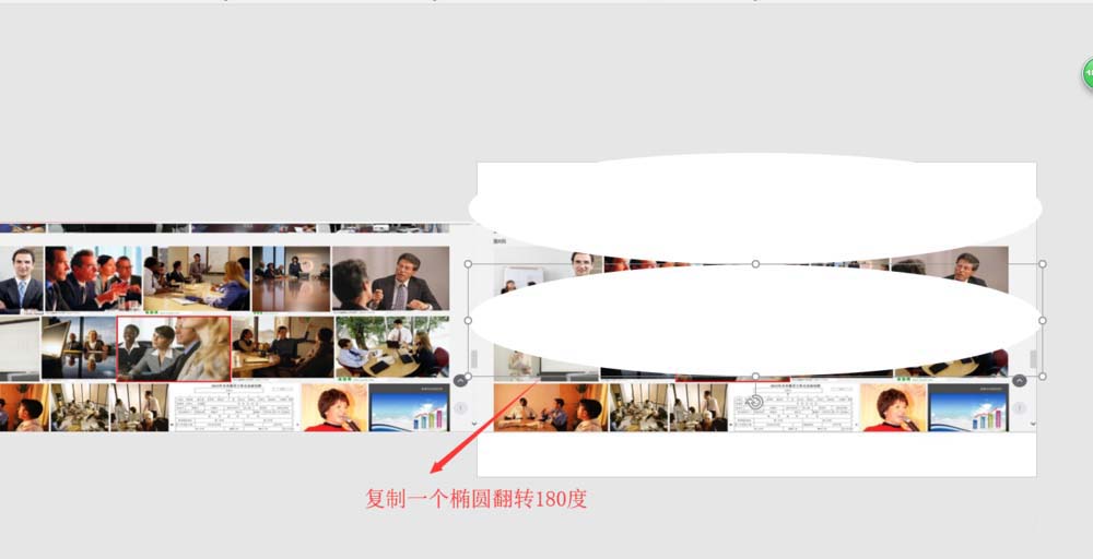 6、在选中椭圆,按住Ctrl键在复制一个椭圆出来,将复制的椭圆旋转180度;并将旋转后的椭圆移到照片下方位置摆好。