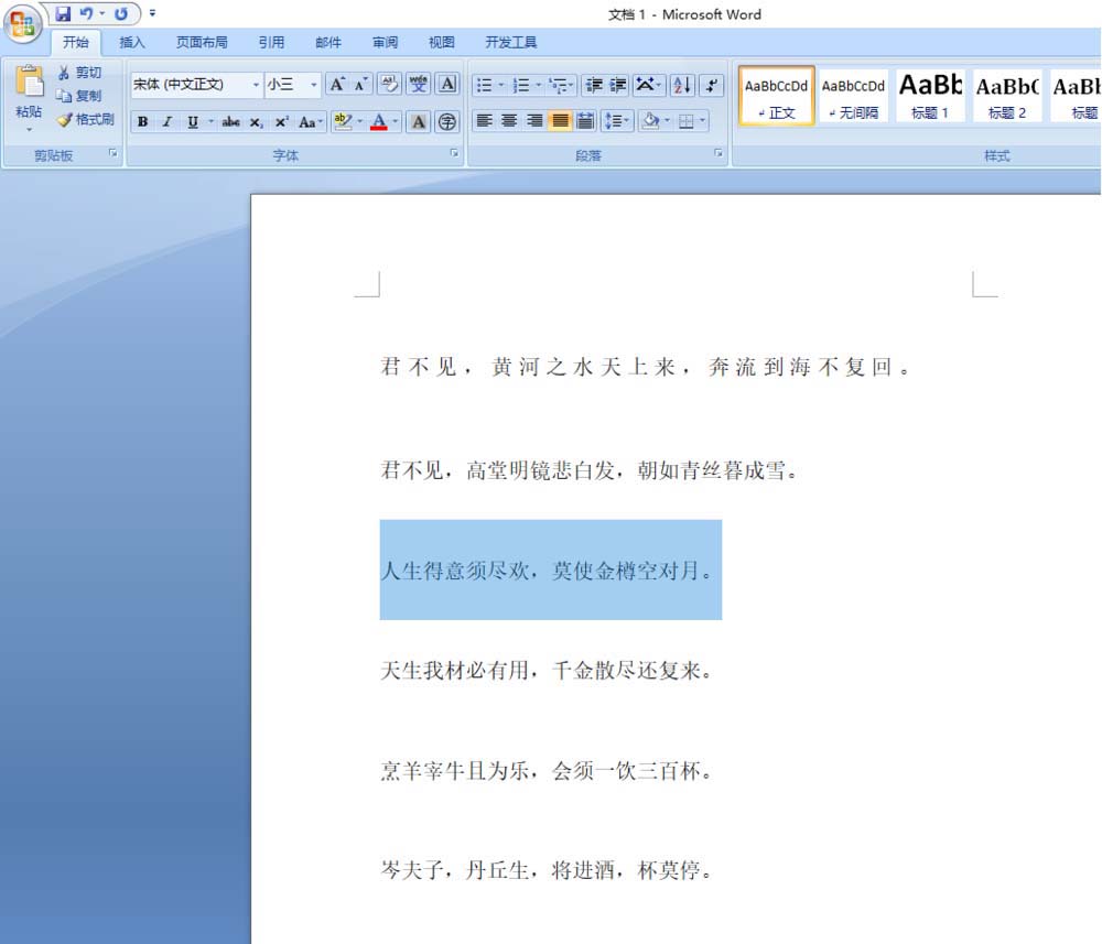 1、选择段落如图所示