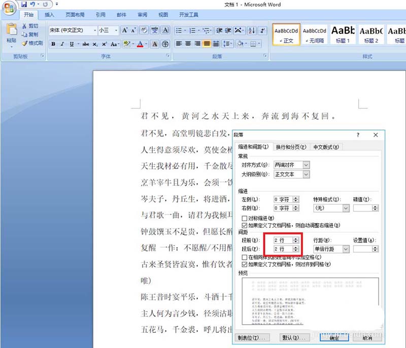 5、设置段前和段后效果