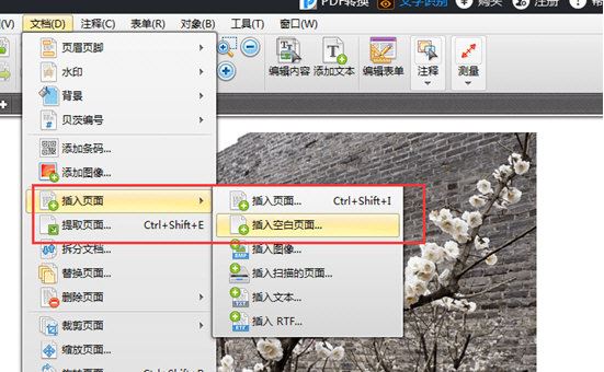 2、打开PDF文件之后,如果想要在PDF文件当中插入新的文档页面,那么需要点击界面的“文档”选项,然后选择里面的“插入页面”功能,如下图所示:
