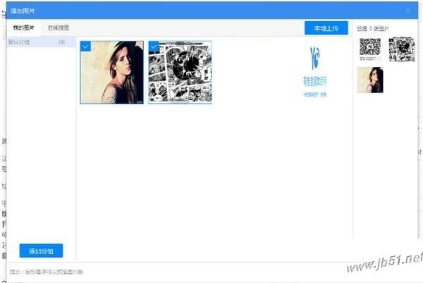 支持选择本地图片和在线搜图,支持搜索gif图片,本地图片支持分组管理。