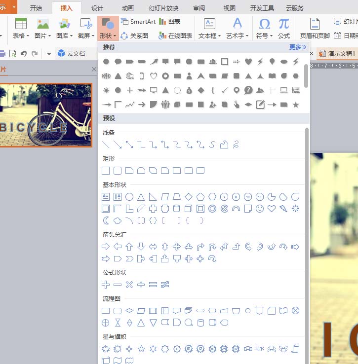 4、点击击【插入】-【形状】按钮,插入一个矩形