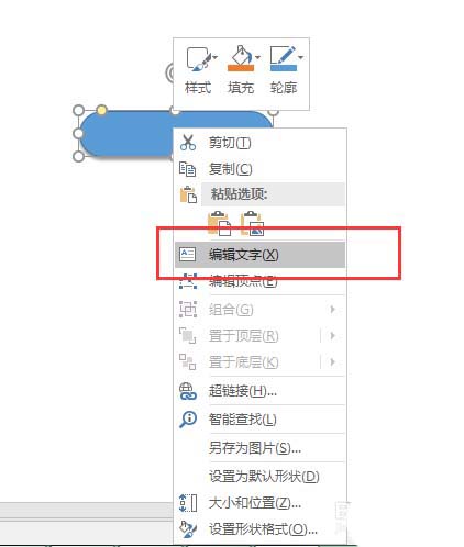 3、选中圆角矩形,在格式菜单中为其添加一个“向下偏移”的阴影形状效果,然后右键该圆角矩形,执行编辑文字命令,输入文字,然后选择文字内容调整文字属性,这里要把数字放的大一点。