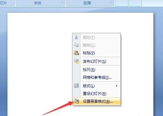 1、首先,在新建的PPT文档中右击,点击设置背景格式。将颜色设置成黑色的背景,如图。