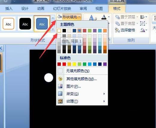 3、继续点击形状填充,选择白色填充圆形。再点击形状效果,点击柔化边缘,10磅。