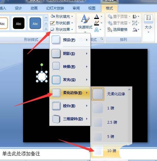 5、再点击格式选项卡,点击形状效果,柔化边缘,2.5磅。