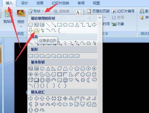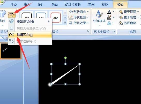 4、再点击插入形状,选择任意多边形。点击格式选项卡,点击编辑顶点,修改形状如图所示。