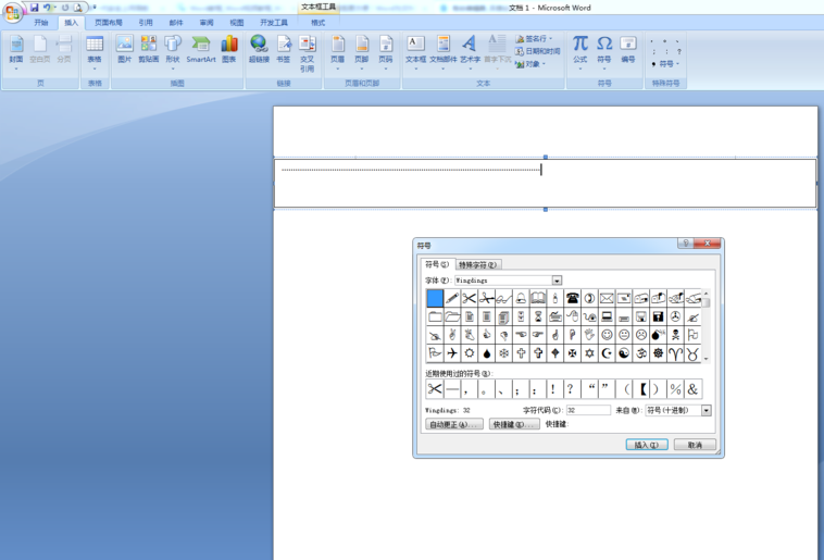 4、下面我们来插入一个剪刀,进入「插入」-「符号」-「符号」-「其他符号」,将字体选择为「Wingdings 」