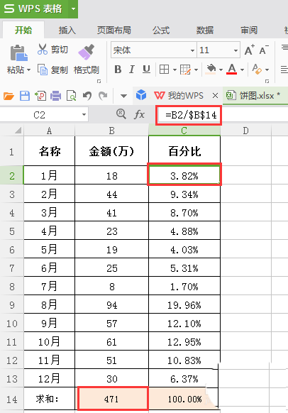 wps表格中想要制作饼形图,首先制作源数据表格,计算各个部分占总数的百分比。在计算百分比输入公式时注意对单元格的绝对引用,该怎么制作饼形图呢?下面我们就来看看详细的教程。