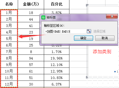 3)添加类别。以此为例,类别就是表格中的所有月份。
