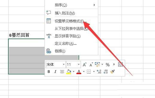 1、我们也可以选中想要输入@符号的单元格,然后右键点击键中的单元格,在弹出菜单中选择“设置单元格格式”菜单项。