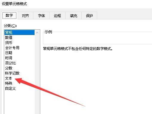 2、接下来在打开的设置单元格格式窗口中选中“文本”菜单项。