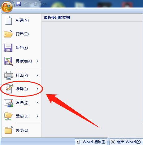 2、在下拉列表中选择“准备”选项。