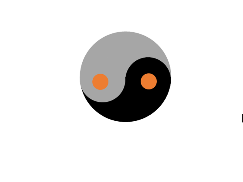 4、将半圆向左旋转90度,再次复制一个修改形状填充为灰色,并垂直翻转,调整位置。