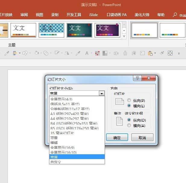 2、然后建立一个PPT,设置大小比例与电子屏或幕布相同。
