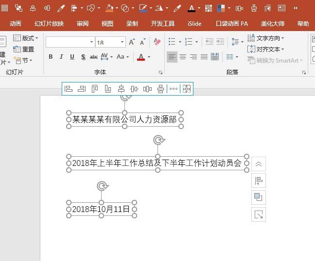 3、插入三个文本框,分别输入公司和部门名称、会议标题,以及会议时间。