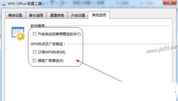 6、在【其他选项】里面关掉所有的软件推荐,然后点击【确定】,这个地方是大量广告的来源,也是一些新闻热点推荐的地方,所以要关掉;
