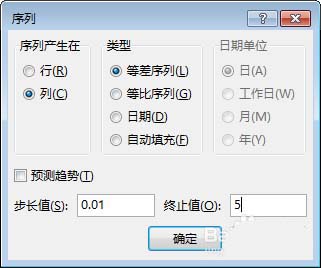 3、在步长值中填0.01(注意该值很关键,要尽量小才能让曲线光滑),终止值填5(根据自己需求画哪段函数填写到哪里)