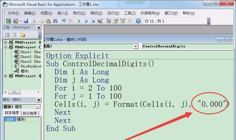 6、Cells函数中,指定控制的小数位数为小数点后3位。