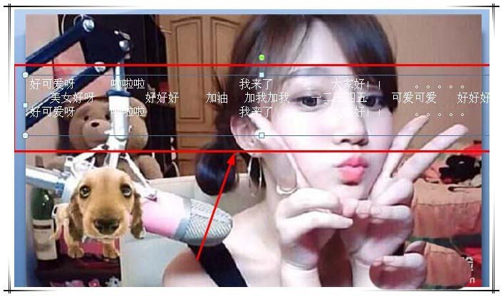 2、插入文本框,输入文字,模拟成弹幕文字。可以输入多行文字,每句话之间,用一定的空格分隔开来。