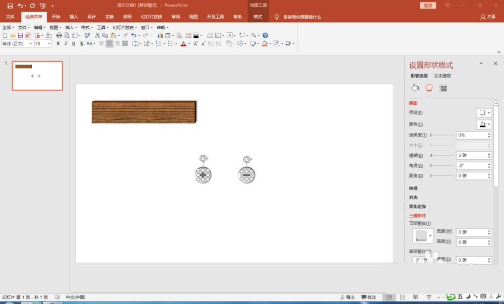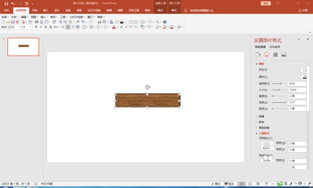 3、设置立体三维格式:深度、光源、阴影等。木板制作完成。