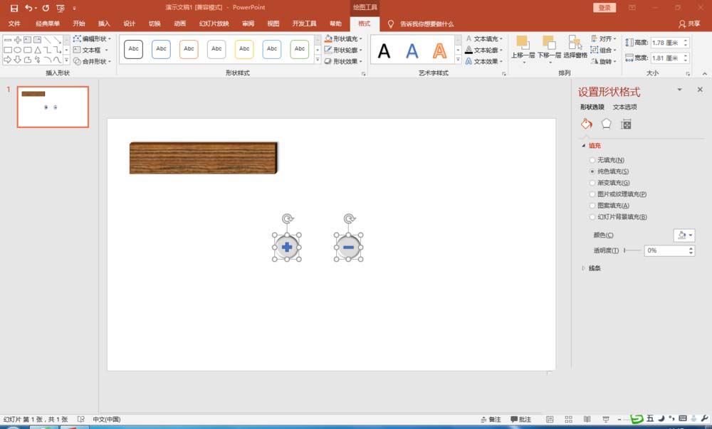 4、制作钉子。插入圆形、+、-形状,设置轮廓和填充颜色。