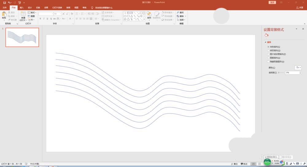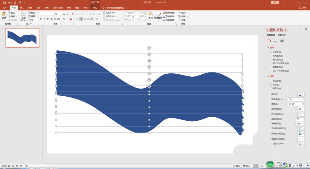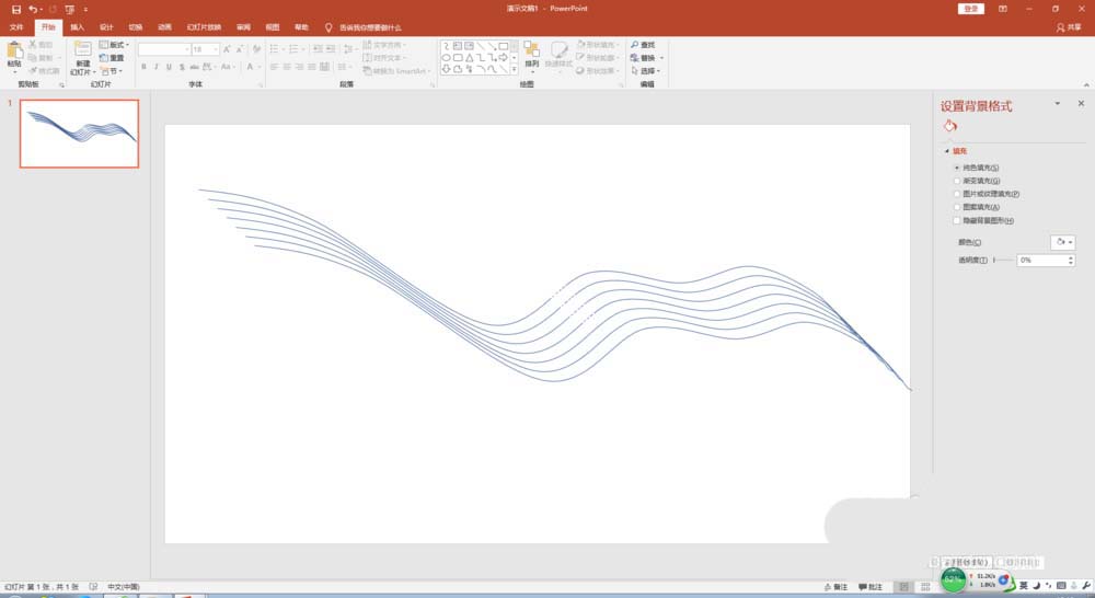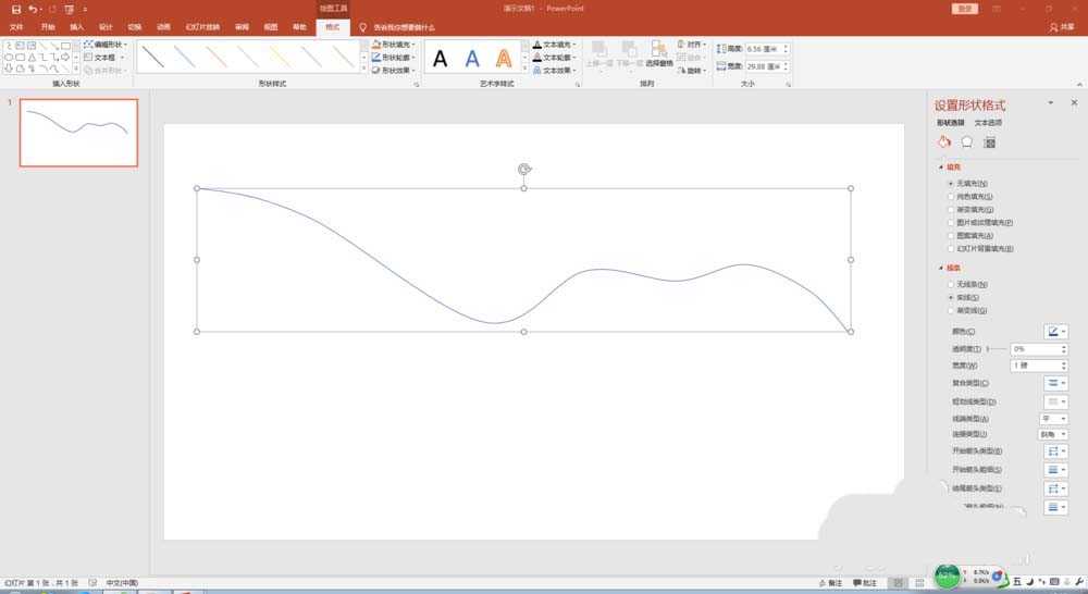 1、打开PPT,删除幻灯片上的文本框,插入形状"曲线",画出一条自由曲线。