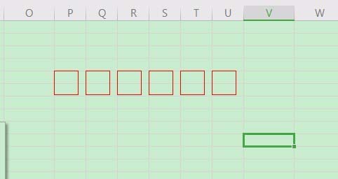 9、这里是调整列宽后的邮编方格,他们在同一条水平线上,间隔相同。