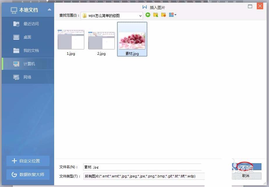 3、找到要修的图片所在的位置,并打开。