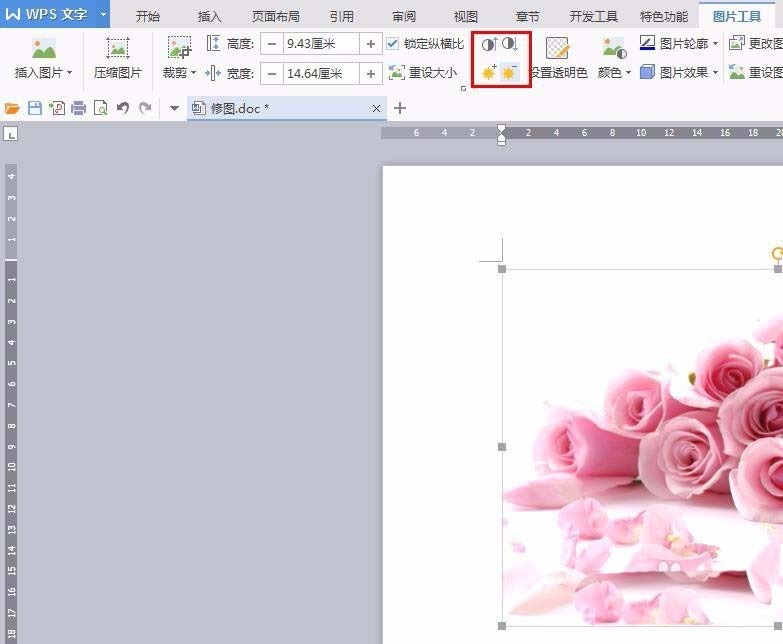 4、单击红色线框标记的按钮,调整图片的亮度。