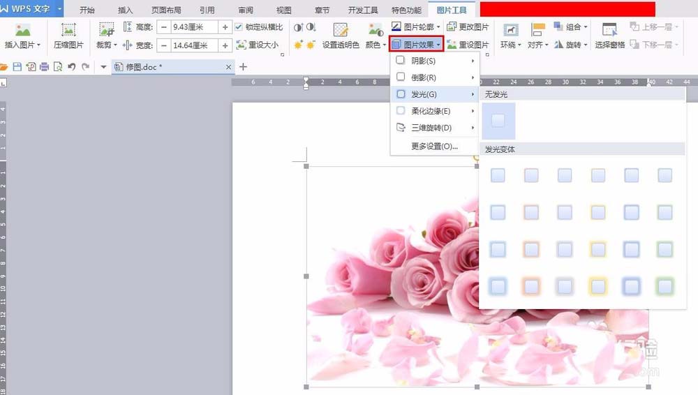 5、单击“图片效果”,根据自己的需要设置图片效果。