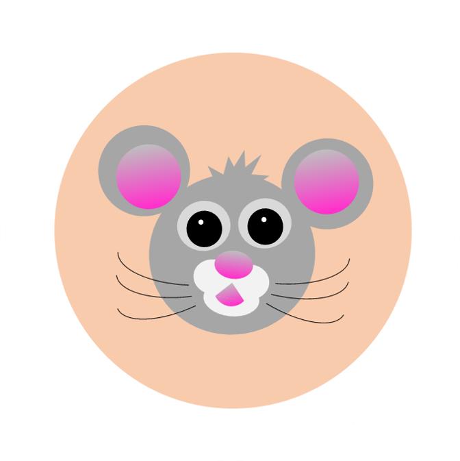 2、拼接出老鼠的耳朵和头脸等。注意形状的大小、位置和叠放层次的调整。