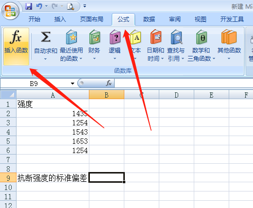2、点击菜单栏的“公式”,选择“插入函数”;
