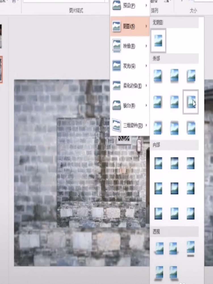 6、把图片效果改为阴影。