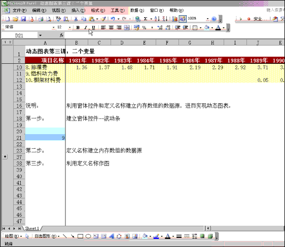 excel表格中想要制作一个动态图表,当有两个变量时,利用窗体控件和定义名称建立内存数组的数据源,进而实现动态图表,下面我们就来看看详细的教程。