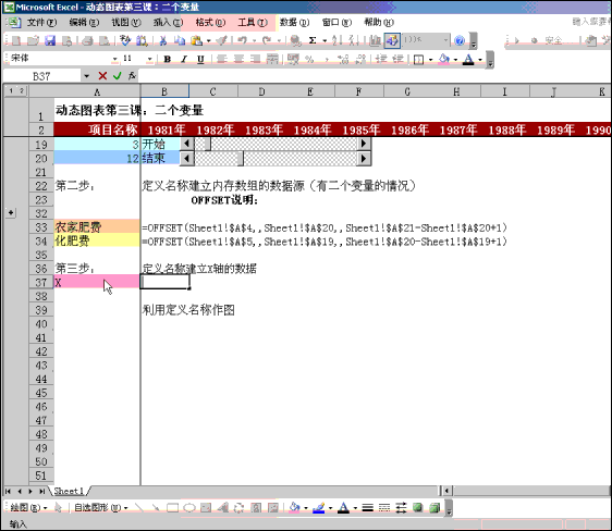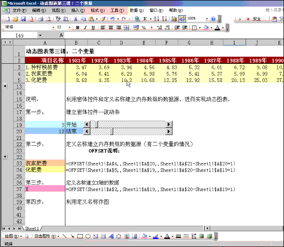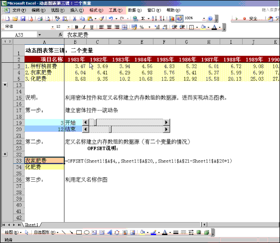 农家肥费=OFFSET(Sheet1!$A$4,,Sheet1!$A$20,,Sheet1!$A$21-Sheet1!$A$20+1)